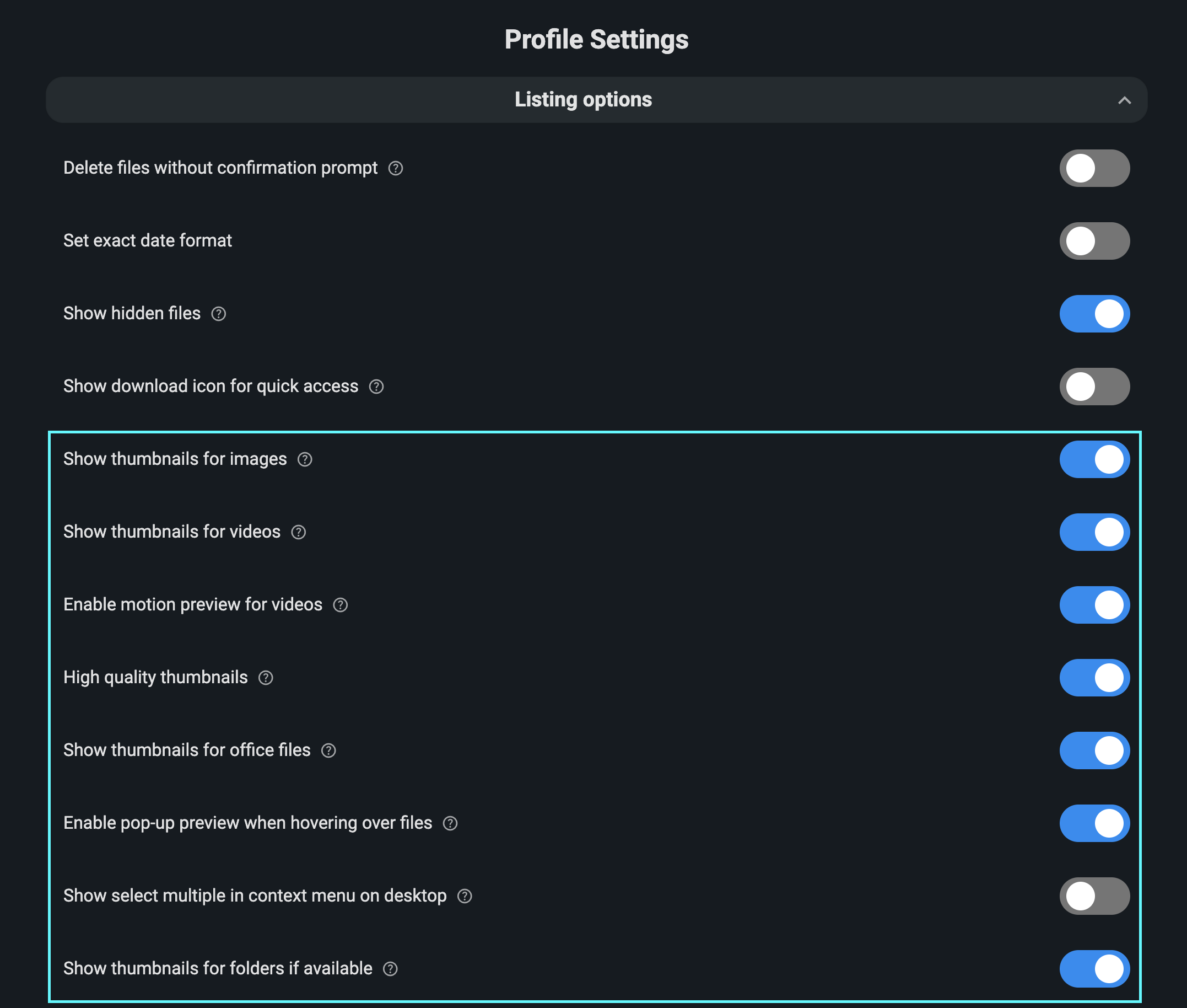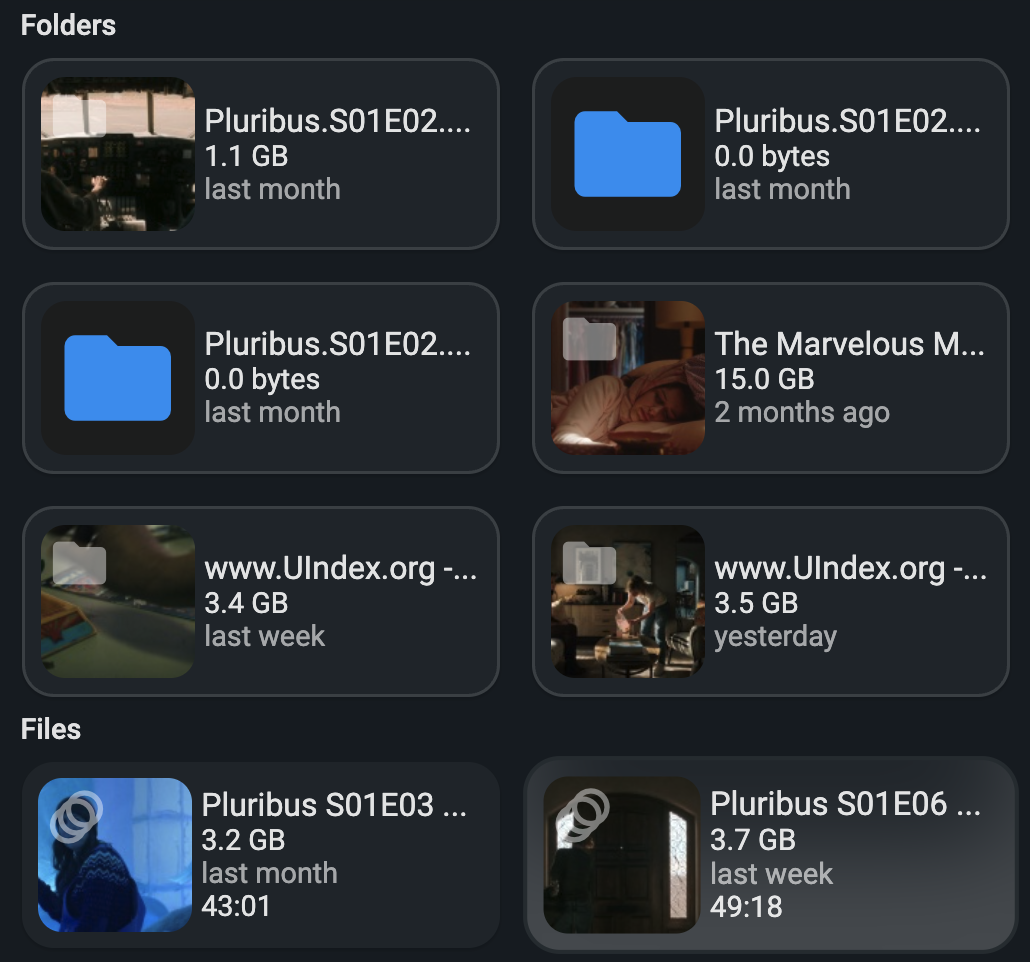 You can also enable previews for folders in profile settings! This will show the first previewable file in the folder (excluding text files). So videos or photos will show as the preview image for a parent folder.