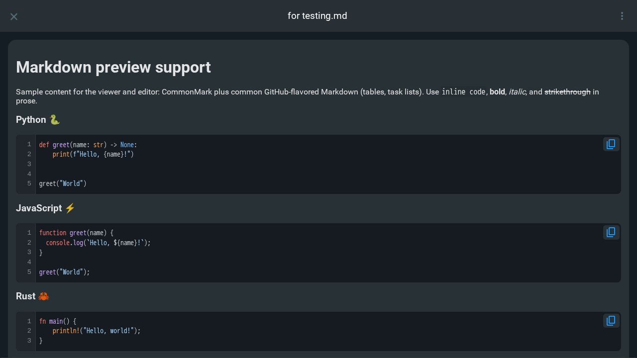 - Syntax highlighting for code blocks