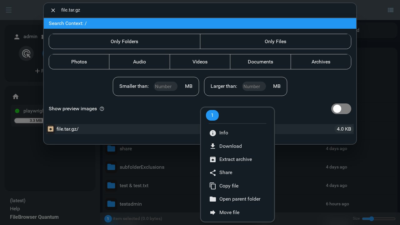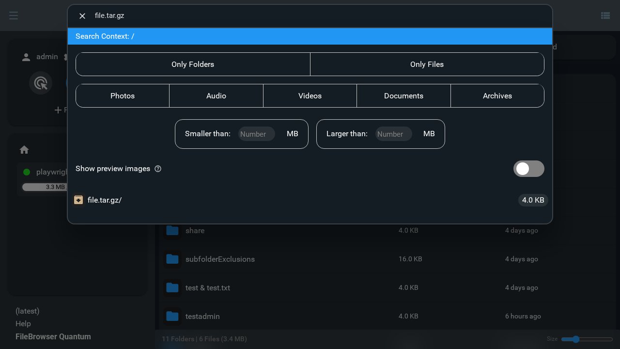 Click the search bar or press / on your keyboard from anywhere in FileBrowser to instantly open the search bar and start searching.