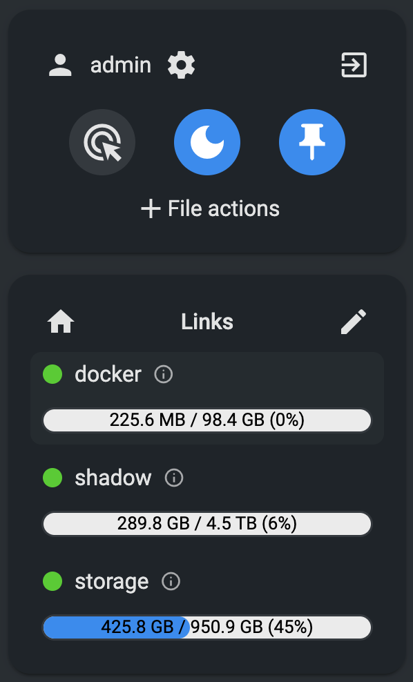 - Source: This will show the usage bar if configured and link to the source. The subpath is configurable. You can have multiple links to the same source, useful if you set different subpaths within a source.